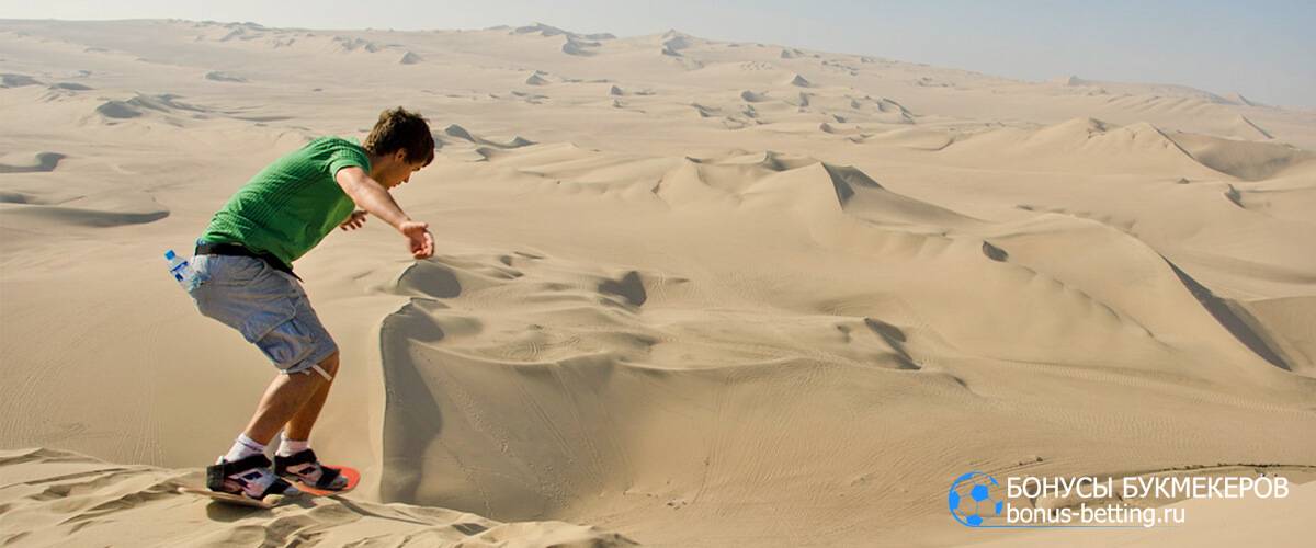 Но есть и недостаток этого движения – конечно же, барханы расположены, преимущественно в Африке, Аравийском полуострове, Египте, Перу, Австралии, в пустынях Северной Америки. Самой популярной пустыней считается африканская пустыня Намиб – дюны которой считаются одними из самых высоких в мире. Но к наиболее доступному месту катания стоит отнести песчаную дюну Tal Mireb (её называют ещё Moreeb Hill) в Арабских Эмиратах