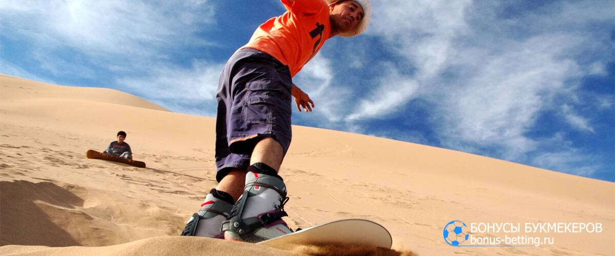 Сэндбординг – это, по сути, разновидность сноуборда, только ездить приходится не по заснеженным склонам, а по песчаным дюнам. Наибольшее распространение получил в пустынной местности или в прибрежных районах с широкими пляжными дюнами.