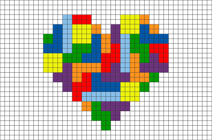 Итак, мы разобрали, как нарисовать сердечко по клеточкам. Осталось только раскрасить его. Контур сделан черным только для наглядности. Можете выбрать любой цвет.