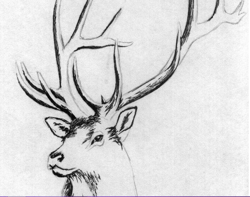 Поэтапный урок поможет не ошибиться в последовательности и правильности нанесения линий на бумаге, которые в результате должны сложиться в грациозного и гордого оленя.