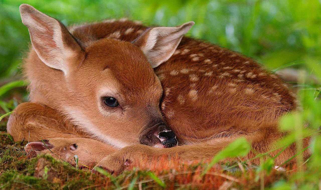 Фото для детей с оленями в живой природе помогут узнать об образе жизни и повадках этих животных. Интересный факт – у самки оленя, обычно, рождается лишь один олененок. Реже из два или три. Смешные малыши кажутся неловкими на своих тонких ножках. Удивительно, но они начинают стоять и ходить уже в первые минуты жизни. Мамочки – олени трепетно относятся к своим малышам и опекают их до тех пор, пока им не исполнится полгода.