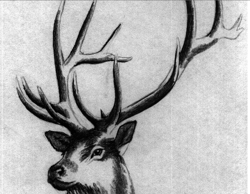 По желанию оленя можно раскрасить цветными мелками или сделать черно-белую растушевку, как показано на картинке.