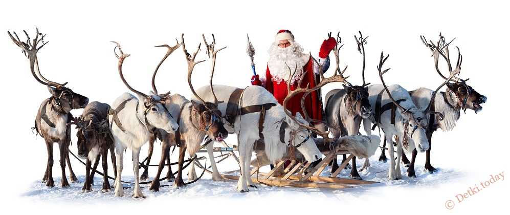 Северный олень для детей, в первую очередь, ассоциируется с Санта Клаусом. Если Дед Мороз ходит пешком или ездит на санях, запряженных тройкой лошадей, у Санта Клауса транспортное средство, на котором действительно передвигаются в Лапландии – оленья упряжка.