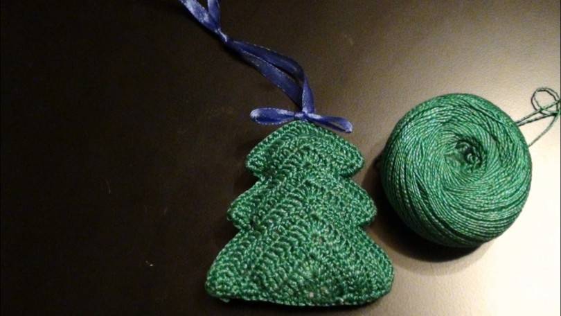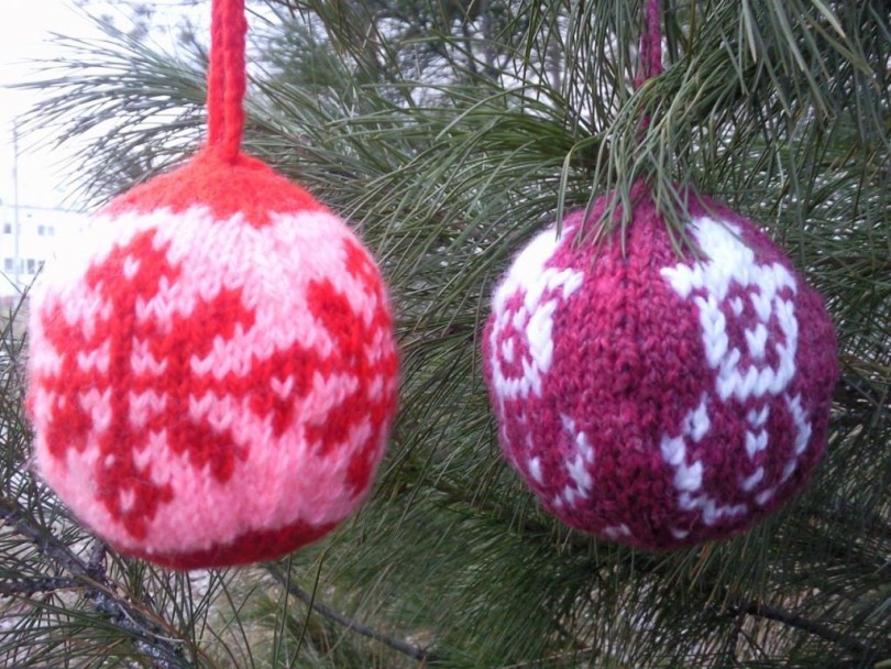 Теперь остается набить шарик наполнителем. Это могут быть: синтетическая вата, старые колготки или целлофановые пакеты. Главное, чтобы материал поддерживал новогоднему шару форму. Вывязываем цепочку нужной длины для петельки, сложив нить вдвое, и закрепляем ее. Протягиваем конец внутрь игрушки. Таких шариков можно навязать запросто на целый новогодний елочный наряд самого разного цвета. Даже если нитки у вас однотонные, то сверху чудесно его украсить вышивкой новогодней тематики.