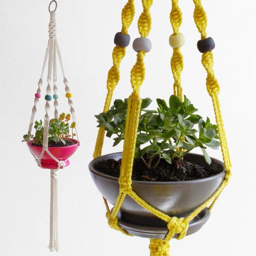 Очень модным стало плести кашпо для цветов. Работа достаточно кропотливая, но пошаговый урок позволит с ней справиться даже начинающим рукодельницам. Кашпо, созданное в технике макраме, представляет собой сетку, в которую помещается горшок с живым цветком.