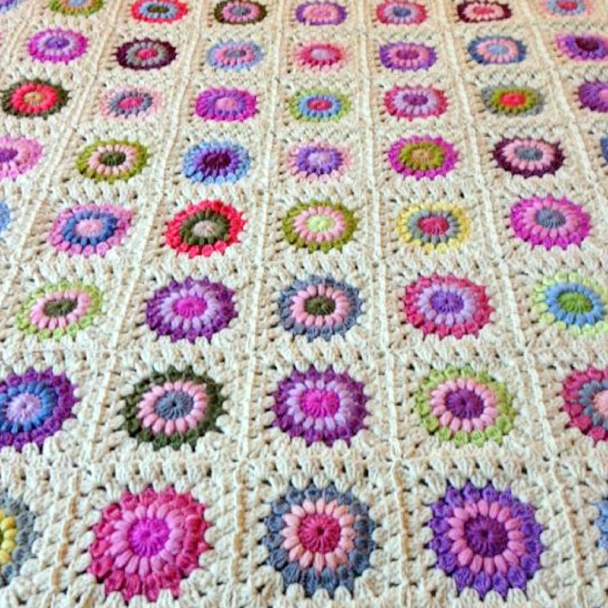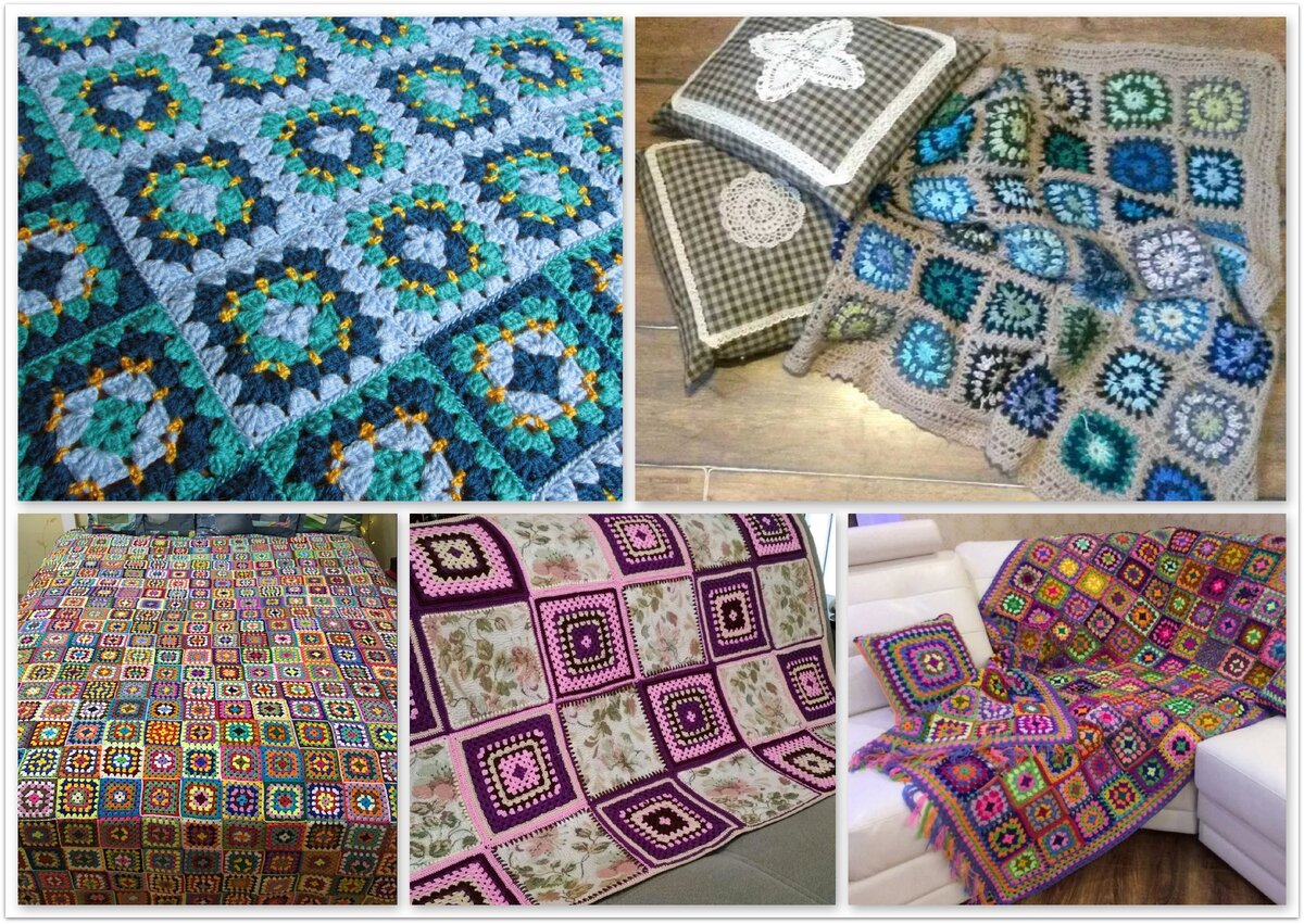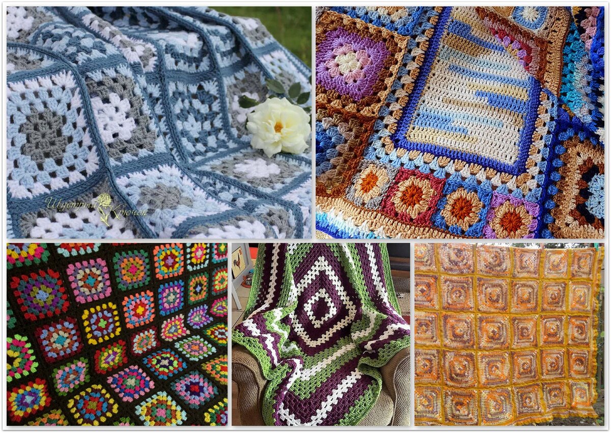 Большая подборка квадратных мотивов для вязания пледа крючком