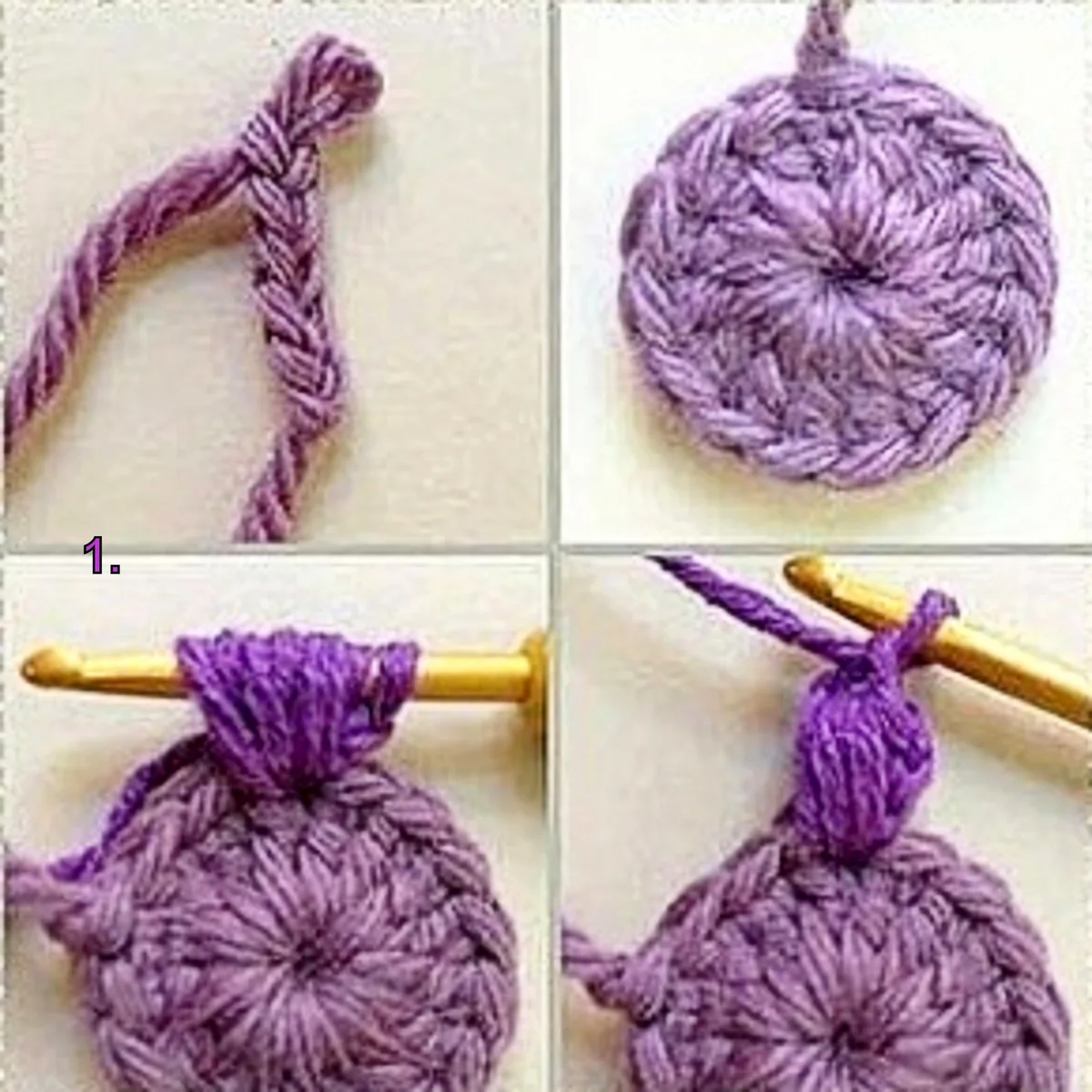 1. Набираем цепочку из 4 воздушных петель и замыкаем её в круг;