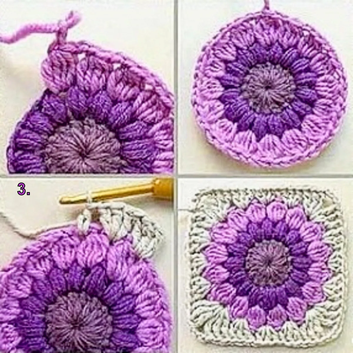 Ещё один простой вариант квадрата, который имеет в своей основе круглый цветочный мотив.