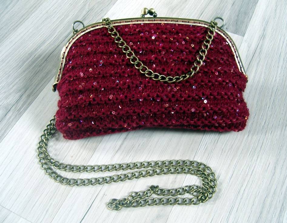 Пряжа с необычной фактурой, включающей добавки из пайеток, люрекса, стекляруса, бисера, позволяет создать не менее оригинальные модели сумок. Перед тем как вязать сумку спицами или крючком, стоит подобрать подходящую технику. Выбор широк – от лицевой глади до ажура, единственное – плести сумку стоит по принципу протяжки декоративных элементов с лицевой стороны, иначе в ходе эксплуатации поверхность изделия будет раздражать кожу.