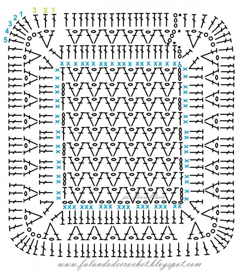 - 5 ряд. Столбики с/н. вязать под заднюю стенку петли.