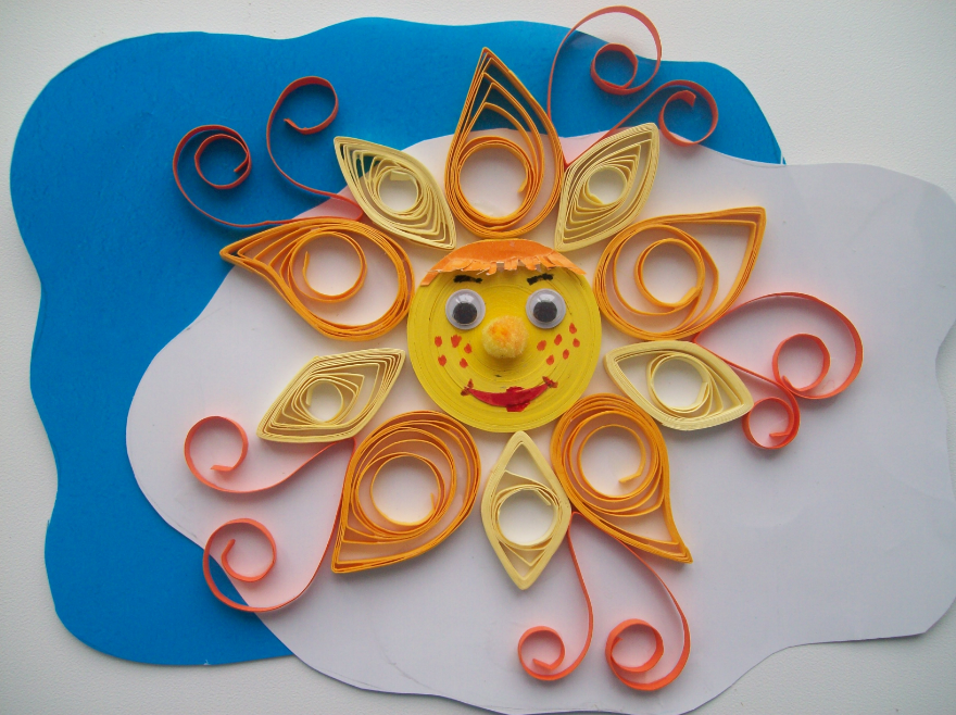Одной из простейших квиллинговых поделок является композиция в виде солнца