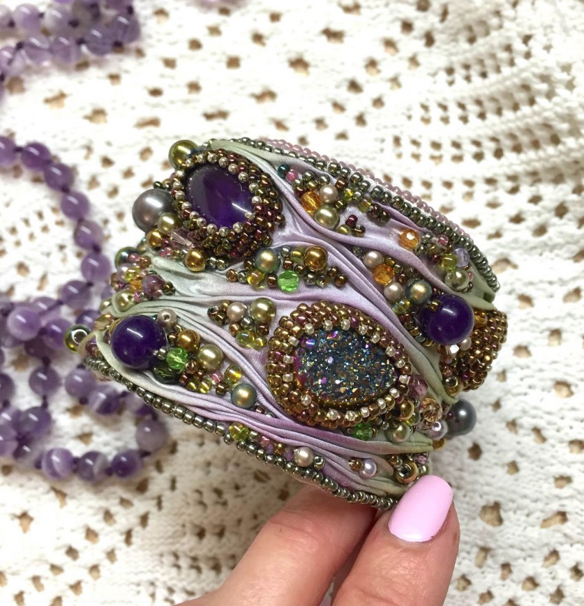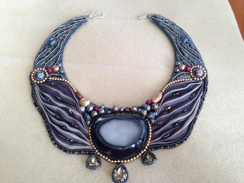 Любой мастер-класс по изготовлению украшения “шибори” будет включать в себя эти этапы работы. Каждый из них требует аккуратности, ведь лента сибори, кабошоны – это дорогостоящие материалы, которые крепятся к основе или при помощи клея или ниткой. Но шелк – тонкая ткань, место прокола на нем будет заметно, если нитку удалить. А полудрагоценные кабошоны следует приклеивать по месту, даже если для их крепления и используются сеттинги. Что уж говорить о работе с бисером или сутажом, когда мелкие стежки – основа качественно выполненной работы. Так что вся техника шибори – это очень тонкий и