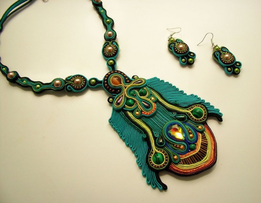 - заполнение поля изделия сутажом, бисером и бусинами;