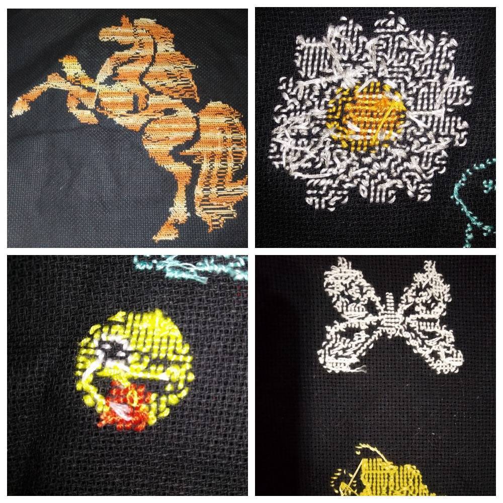 - На изнаночной стороне стежки лежат в одном направлении: горизонтальном или вертикальном, не советуется их смешивать. Это касается всех вышивок, когда изнанка останется открытой для окружающих. Если вы будете оформлять картину, зашивать чехол или прятать другим способом, можно нарушить правило. Но только при очень большом желании, не злоупотребляйте художественным хаосом на вышивке.