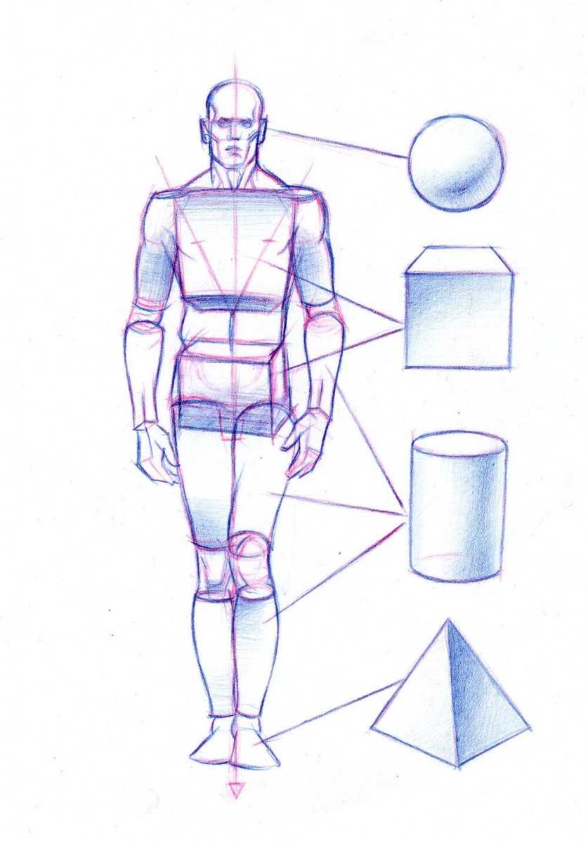 Начинающие художники часто совершают одну и ту же ошибку, то есть сразу пытаются вырисовывать форму тела. Но не стоит создавать линии на первом этапе. Сначала нужно набросать пропорции, распределить основные элементы скелета и только после этого начать оформлять мышцы в виде овалов.