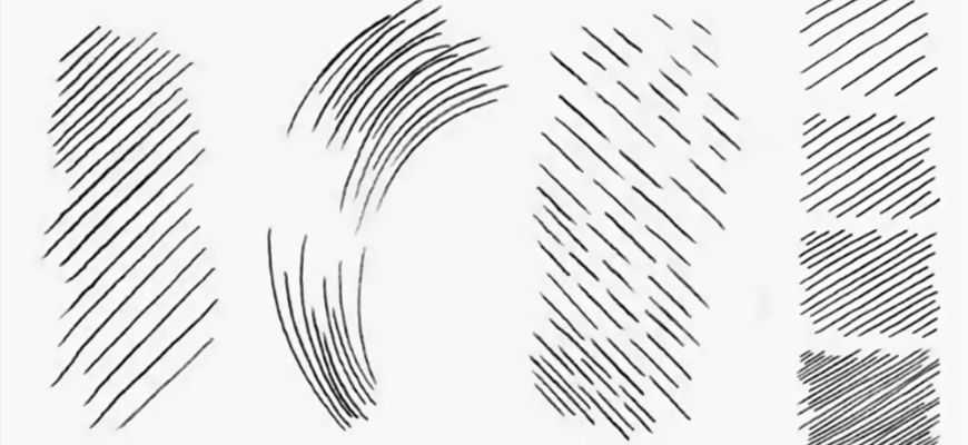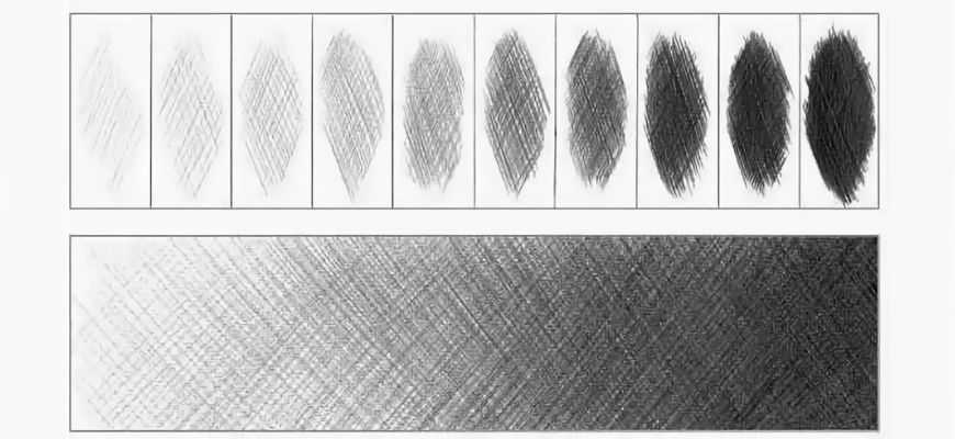 Области на рисунке заполняются цветом с помощьюштриховки и растушевки. Штриховка — это нанесение линий разной толщины на некотором расстоянии друг от друга. Штрихи могут быть разной формы, пересекаться или накладываться друг на друга. Штрихи можно растушевать по листу и получить более мягкий переход цвета.