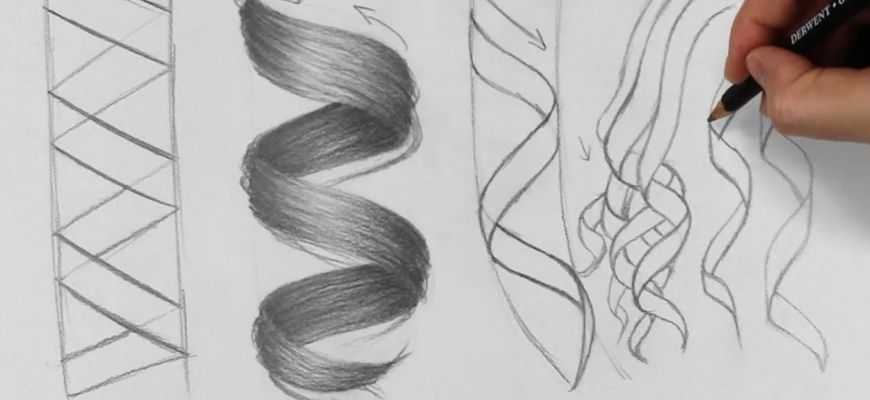 Самый простой способ нарисовать локоны – провести от предполагаемой головы волнистые линии, которые соединяются на кончиках. Сложно? Тонкой линией нарисуйте контур головы и от неё опустите локоны.