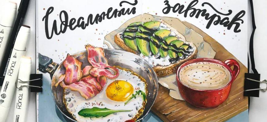Продуктовый скетчинг — один из самых популярных видов скетчинга для начинающих, это всевозможные рисунки на тему еды и продуктов питания: коктейли, мороженое, бутерброды, кофе и тд.