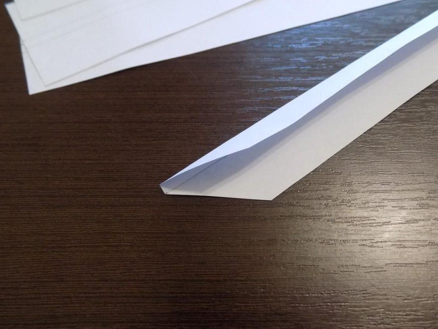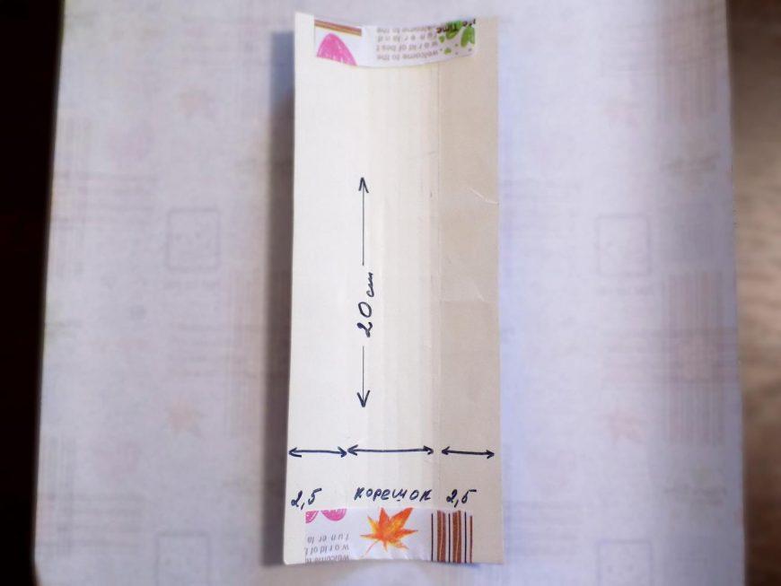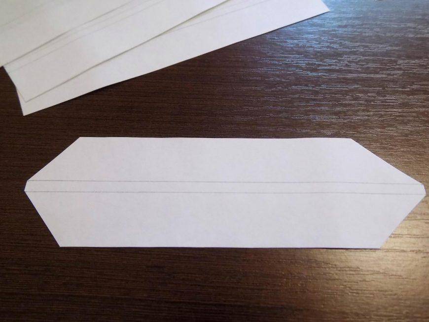 - Используя линейку нужно найти центр самой узкой части. От данной середины сгибаем во все стороны не больше 2 мм. С другой стороны проделываем те же самые действия.