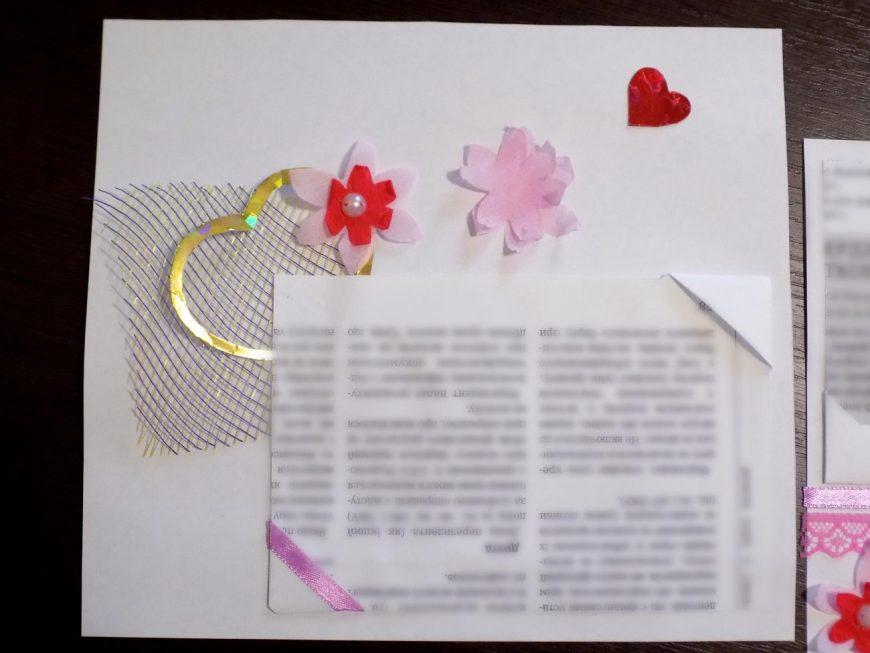 - Полученные обрезы прячем с листиком картона или любой другой, но обязательно плотной бумагой.