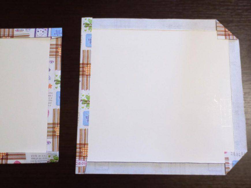 - На белом картоне начертить квадрат, соответствующий размеру альбома и вырезать его.