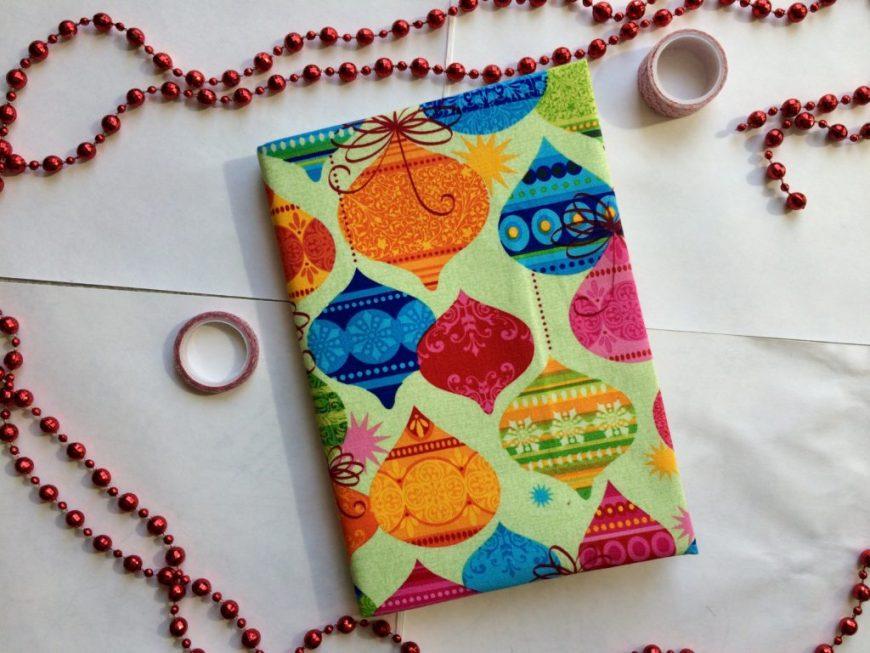 Для листов потребуются прямоугольные кусочки двусторонней цветной плотной бумаги, а для обложек будет нужен двусторонний картон. Для начала, следует оформить обложку. И, для этого потребуется прямоугольный кусочек красивой ткани. Желательно, чтобы по цвету он немного отличался от цвета картона.