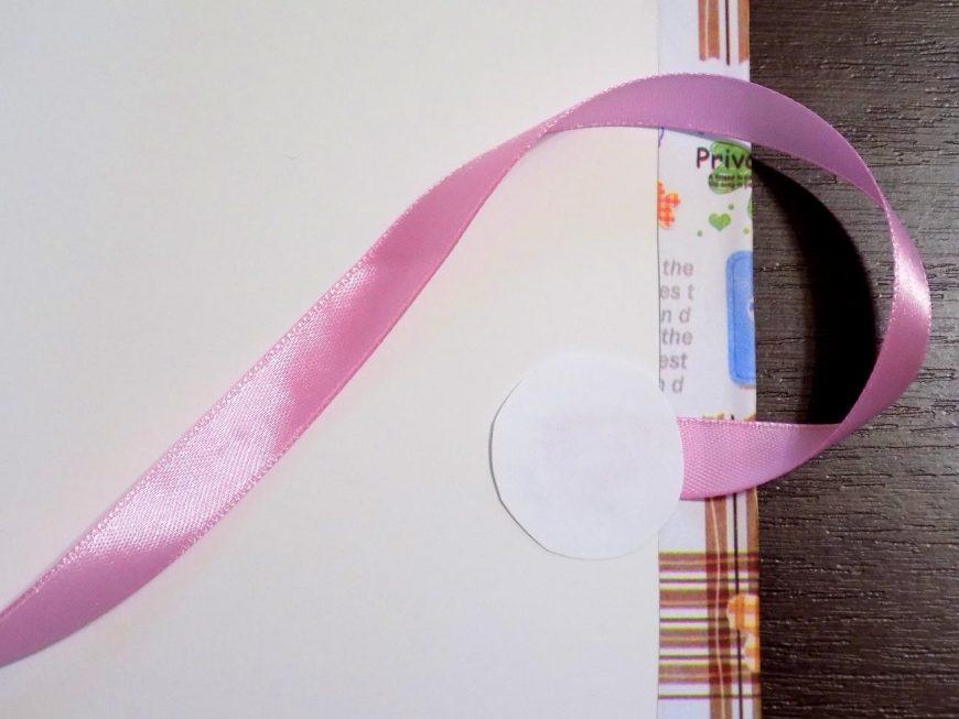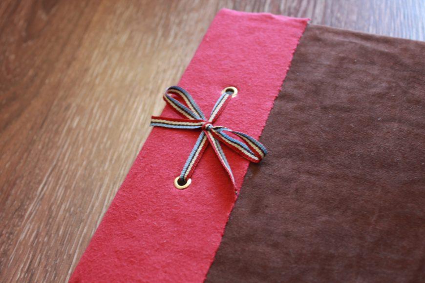 - тем же дыроколом сделать отверстия на каждой странице и скрепить их между собой красивыми лентами. При этом можно использовать разные методики сплетения: от самых простых, все в до более сложных;