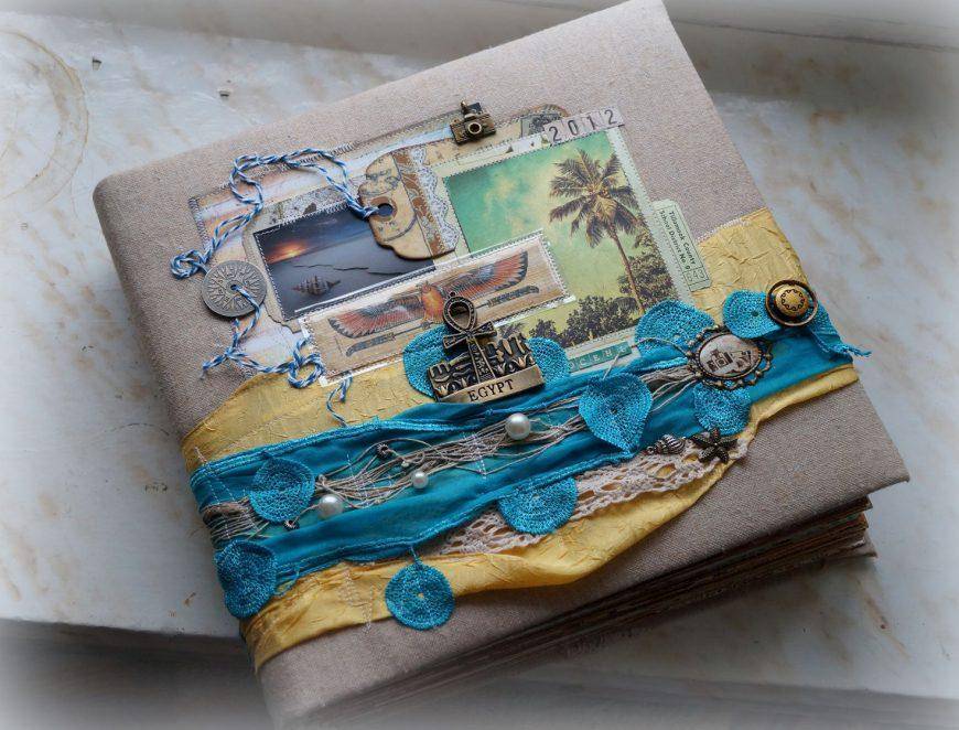 Фотографии и набольшие сувениры из увлекательного путешествия можно хранить в самодельном фотоальбоме путешественника. Билеты в музеи и галереи, в природные заповедники будут отличным напоминанием о поездке. Засушенные цветы из другой страны или лоскуток ткани с национальным узором украсят и придадут особый стиль фотоальбому.