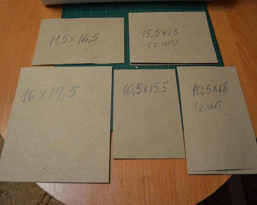 - Подкладочный материал вырезаем одинакового размера как картонные листы.