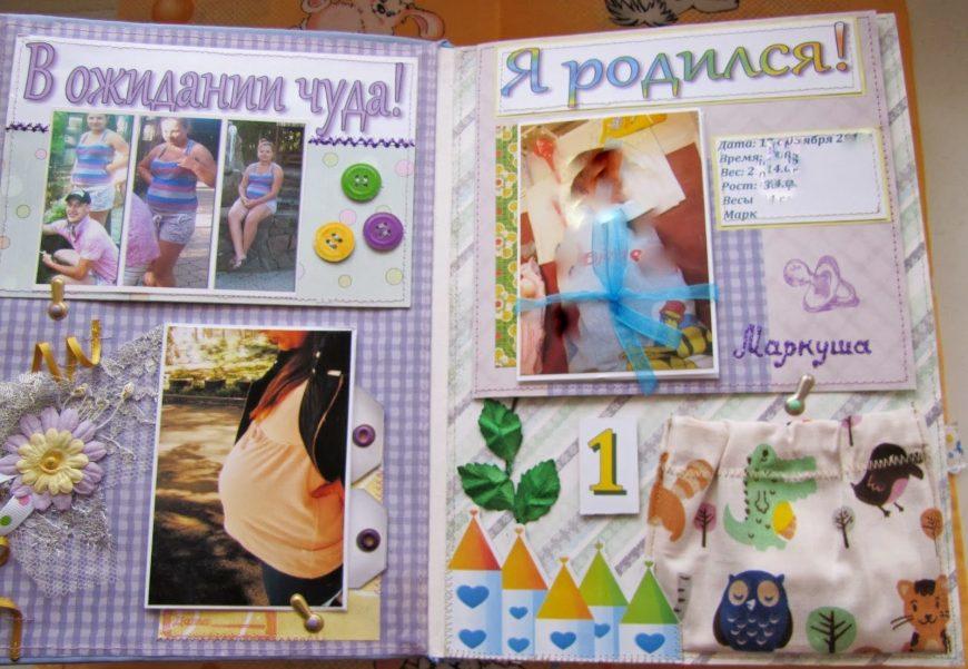 Все эти элементы впоследствии будут приятным воспоминанием для родителей и бабушек-дедушек, альбом не будет обезличенным, а обретет свою живую принадлежность к семье.