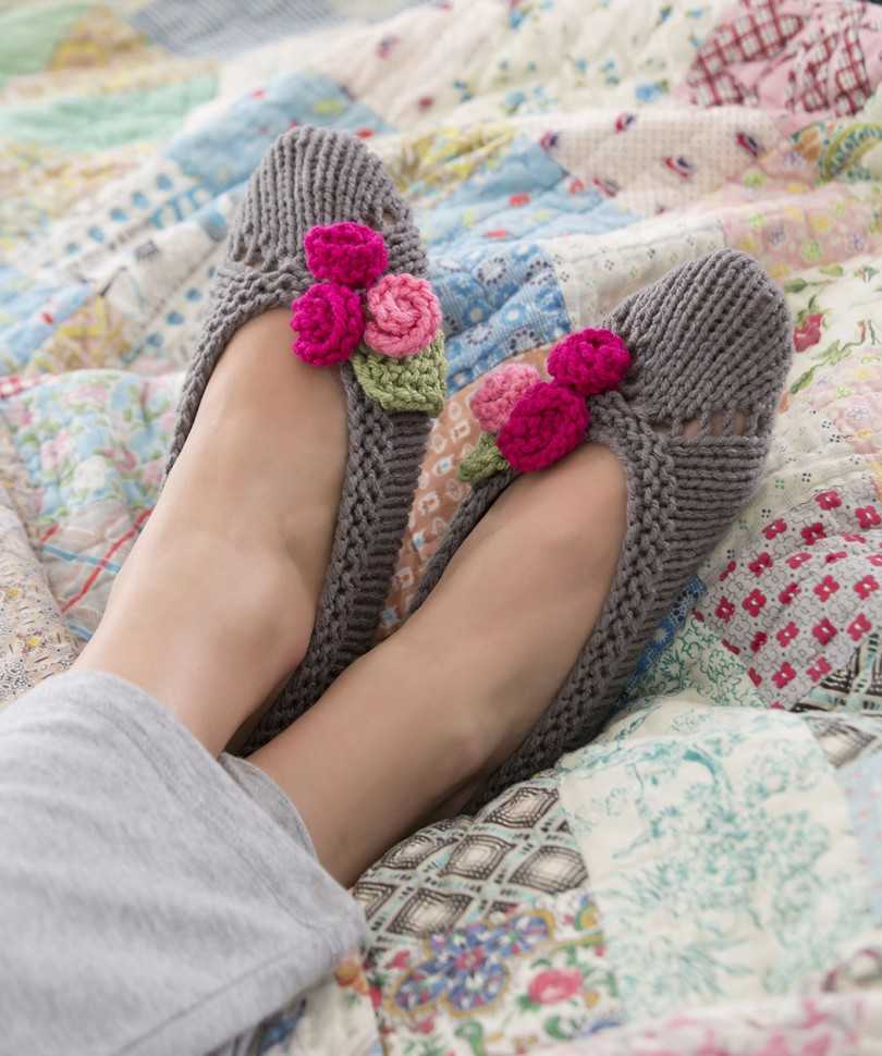 Декор тапочек вязанными цветами