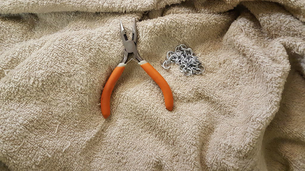 Украшения из кольчужного плетения и вещи, которые надеваются на голову, могут запутаться в волосах. Можно обработать концы колец наждачной бумагой, чтобы они смыкались плотно. Если вы делаете что-то большое, полировка одновременно всех колец в поворотном барабане займет меньше времени, чем обработка наждачной бумагой каждого кольца в отдельности. Шарфик или ткань, подложенная под кольчугу, не даст кольчуге поцарапать кожу головы или повредить волосы.
