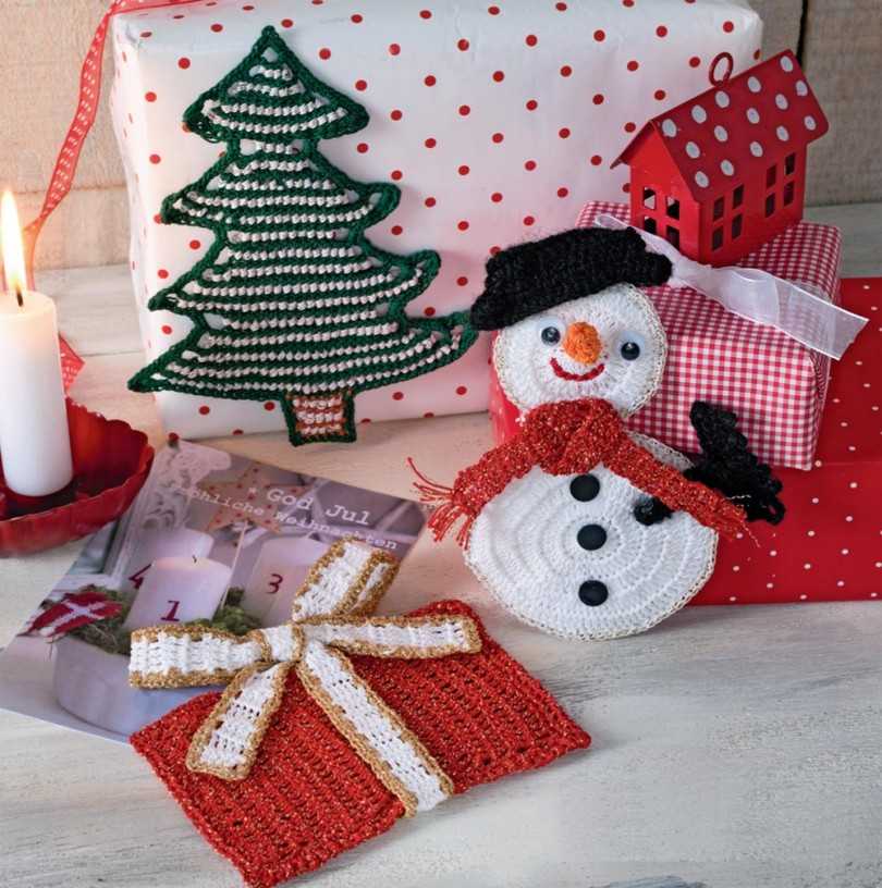 Вязаные крючком снеговики могут быть объемными или плоскими. Последние могут стать стильной прихваткой для кухни, элементом новогоднего панно или поздравительной открытки. Чтобы сделать плоского снеговика достаточно освоить только описание одной схемы – вязаного круга. Затем варьируя его размерами, можно собрать из двух заготовок разного диаметра простую игрушку. Ее украшение можно связать или сделать из пуговиц, атласных лент и других подручных материалов.