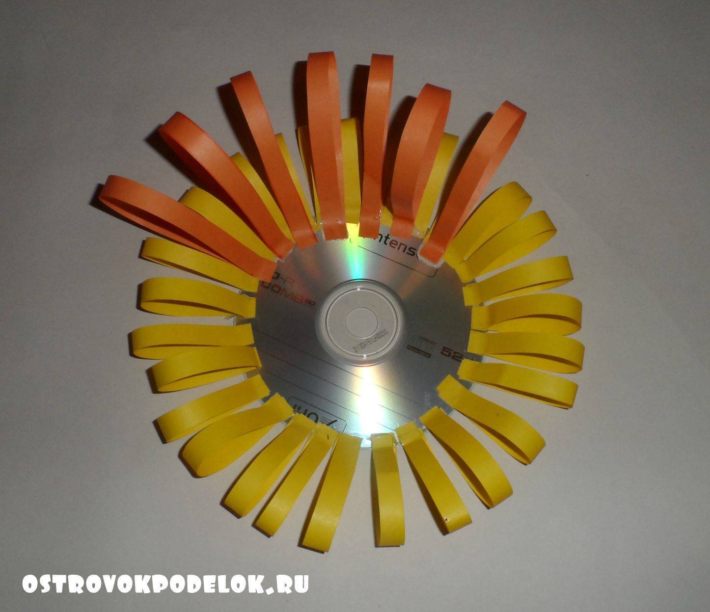 Украшение солнышка из дисков