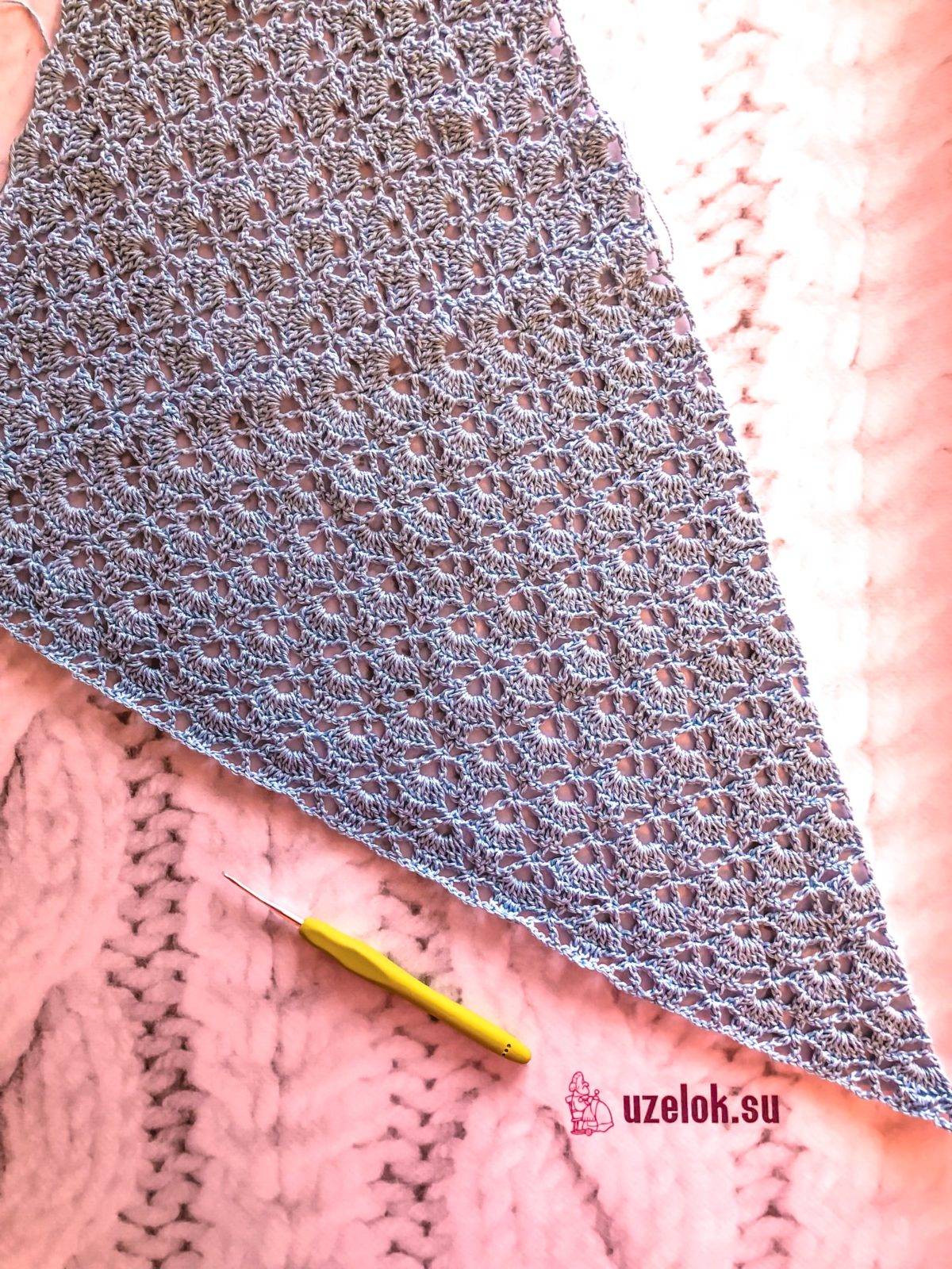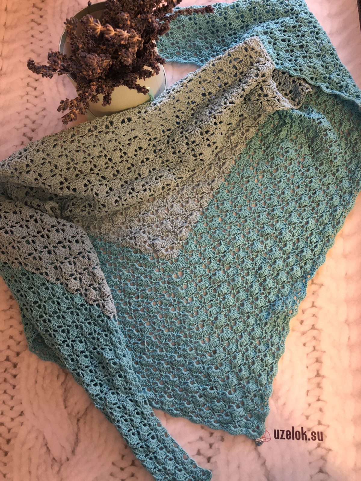 Шаль имеет треугольную форму, вяжется сверху вниз.