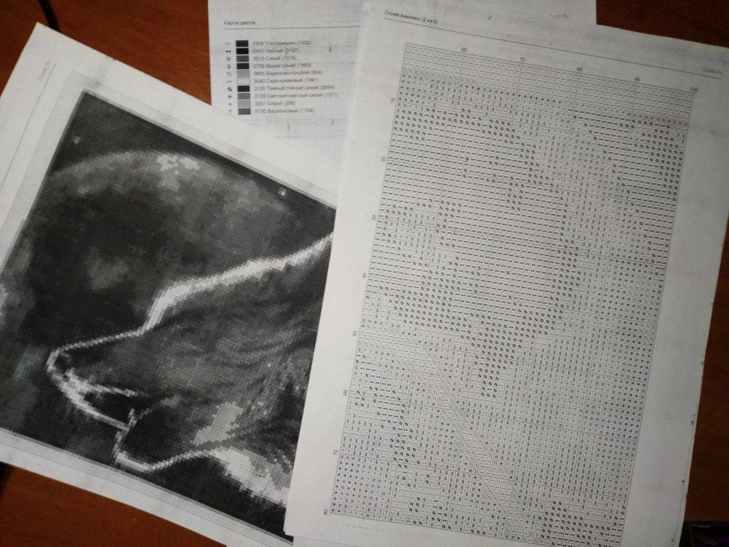 - Изучаем схему и приступаем непосредственно к работе. В процессе стоит делать карандашные пометки на местах смены цвета нити.