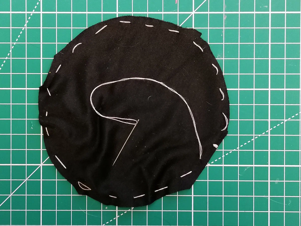 - Продолжайте шить, прокалывая ткань с помощью иглы и прошивая ее с одной стороны на другую.