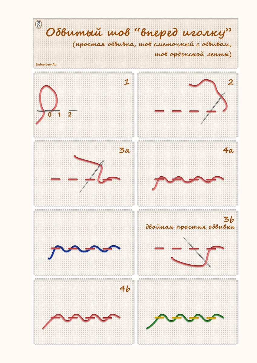 - Иглой с нитью обвиваем стежки по всей длине шва.