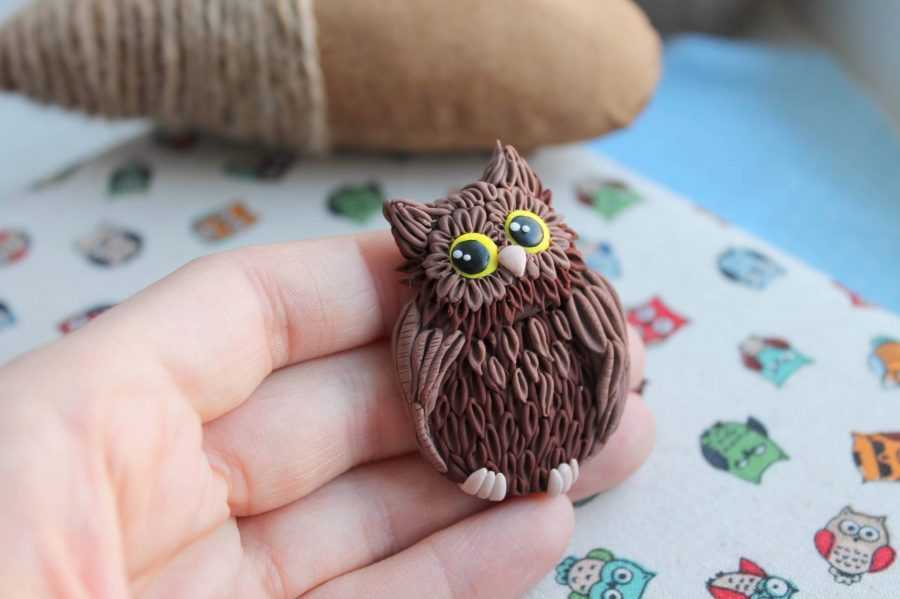 В первом случае необходимо подготовить шаблон из картона с нанесенным изображением совы. Далее ножиком отрежьте кусочки пластилина коричневого и черного цветов.