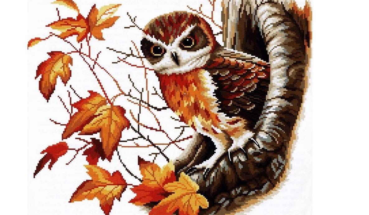 Выполняем вышивку с изображением совы по схеме