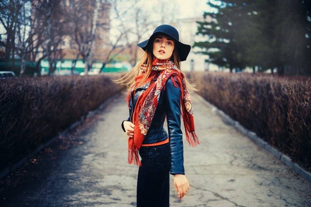 Меховая шубка смотрится женственно и элегантно. Шарфик к ней нужно подбирать особенно тщательно, чтобы образ не утратил своего лоска. Беспроигрышный вариант — расписные павлопосадские платки. В последнее время косынки, которые носили наши бабушки, засияли совершенно другими красками. Девушка в шубке и шелковом платке выглядит стильно и утонченно.