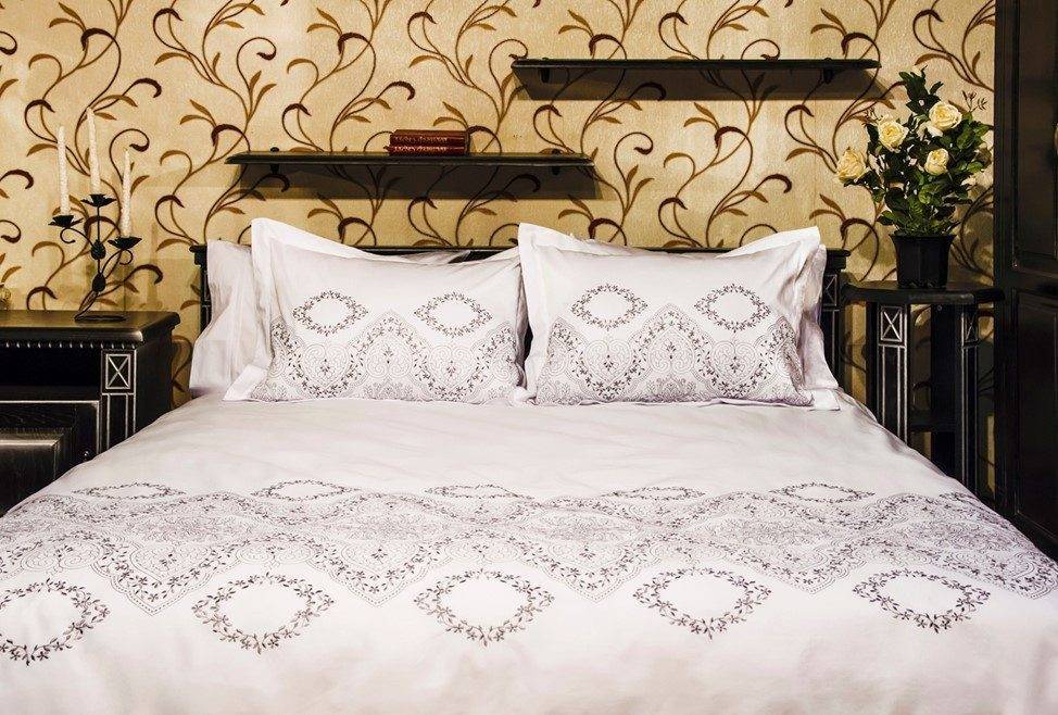 - Текстиль из натуральных тканей с вышивкой, кружевами, рюшами;