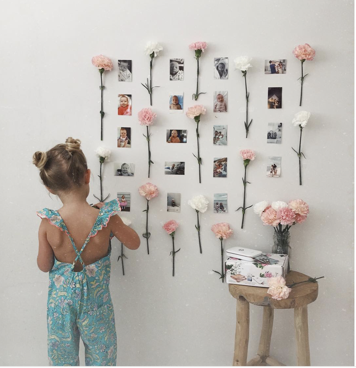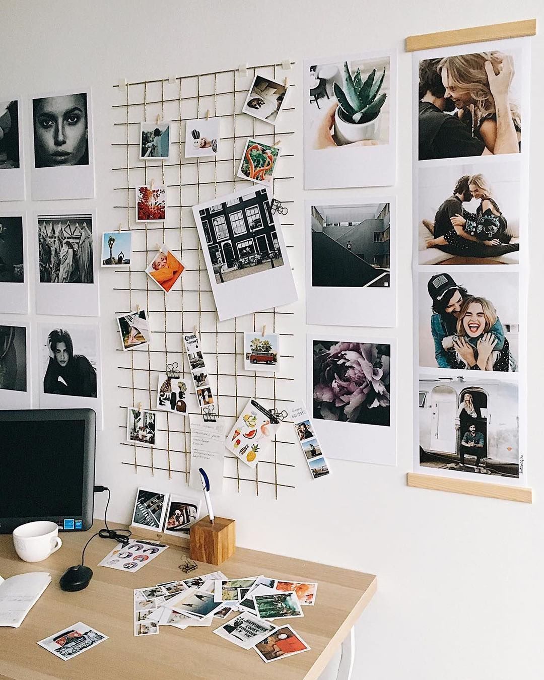 Можете вообще не привязываться к очертаниям и расположить снимки хаотично по всей стене.