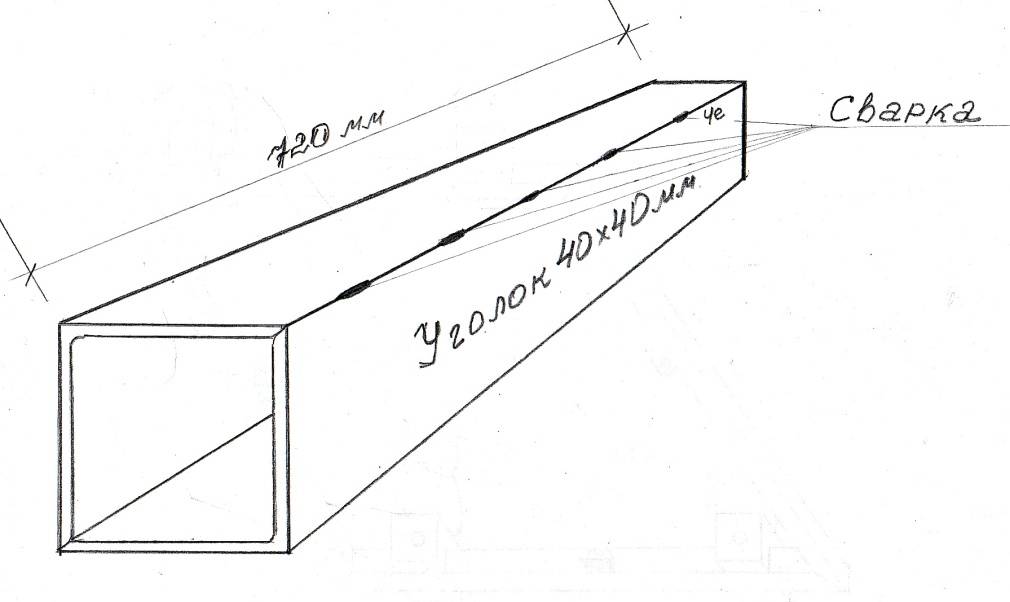 - Отрезки уголка длиной 72 см сложил попарно, так чтобы получилось коробчатое сечение.
