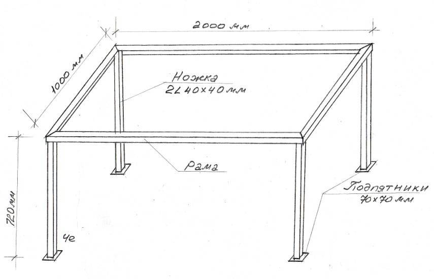 - Электросваркой с шагом 300 мм соединил уголки в единую конструкцию. Получились ножки стола.