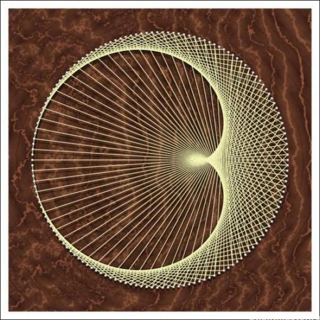 Вы когда-нибудь видели, как работает спирограф? Принцип действия этой детской игрушки заключается в том, что карандаш или ручка закрепляются в отверстии специального кольца, оно вставляется в большее по диаметру, и за счёт движения последнего на бумаге остаются замысловатые линии. А теперь представьте такую же картину, но с объёмным изображением? Красиво? Главное, освоить технику стринг арт под силу всем – от мала до велика, а для создания панно понадобятся обычные гвозди и нитки.