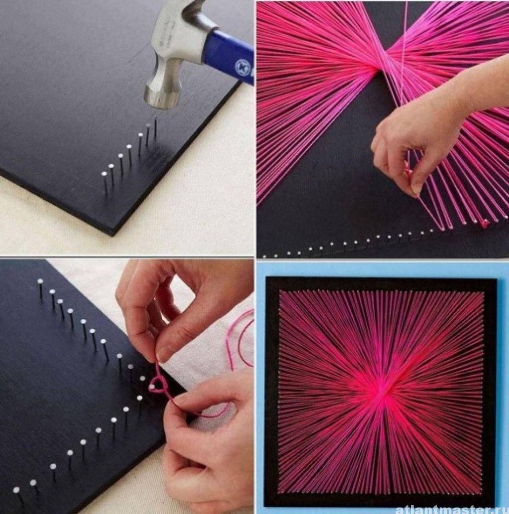 Вот простые пошаговые алгоритмы создания картины из ниток.