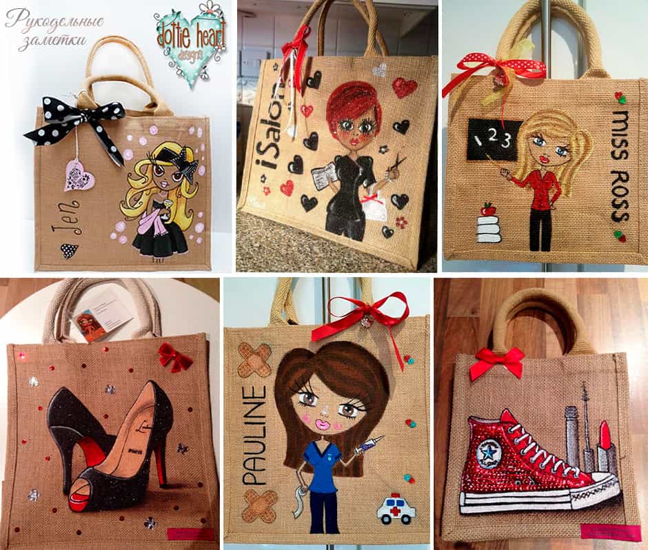 Полотно принимает любой декор и рисунок, поэтому несложно сделать сумку под бутыли с маслом или другим содержимым, изготовить габаритную «упаковку» для детского подарка и т.д.