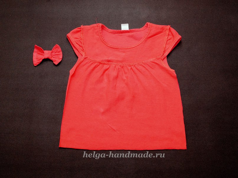 Дня начала отделяем бантик и отрезаем нижнюю часть футболки.