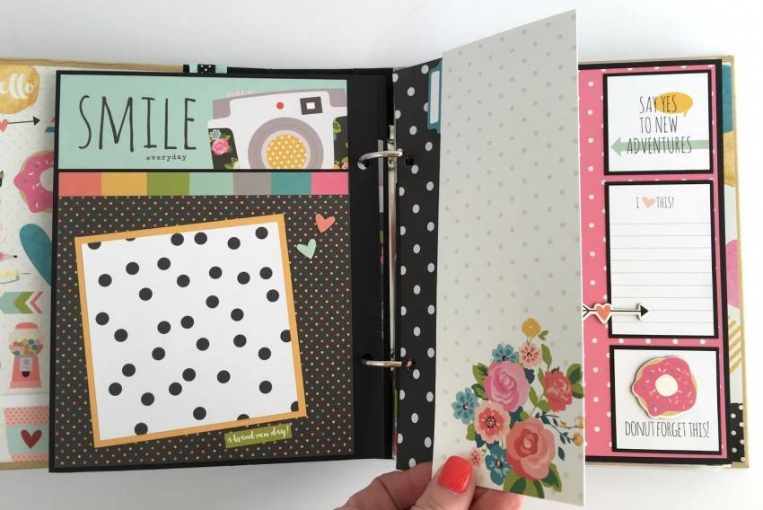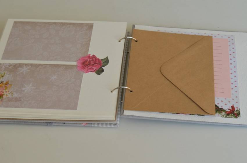 На начальном этапе также стоит определиться с креплением всего альбома. Это могут кольца, атласная лента или прошивка. Здесь все зависит от вашего желание потрудиться и в целом видения альбома.
